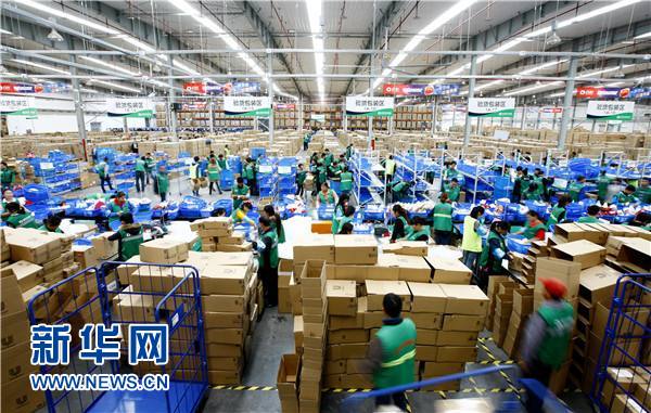 2015年11月11日,百世匯通上海一號倉儲運分揀中心全景。當日凌晨,一年一度的“雙十一”網絡購物節正式拉開序幕。新華社記者 方喆 攝