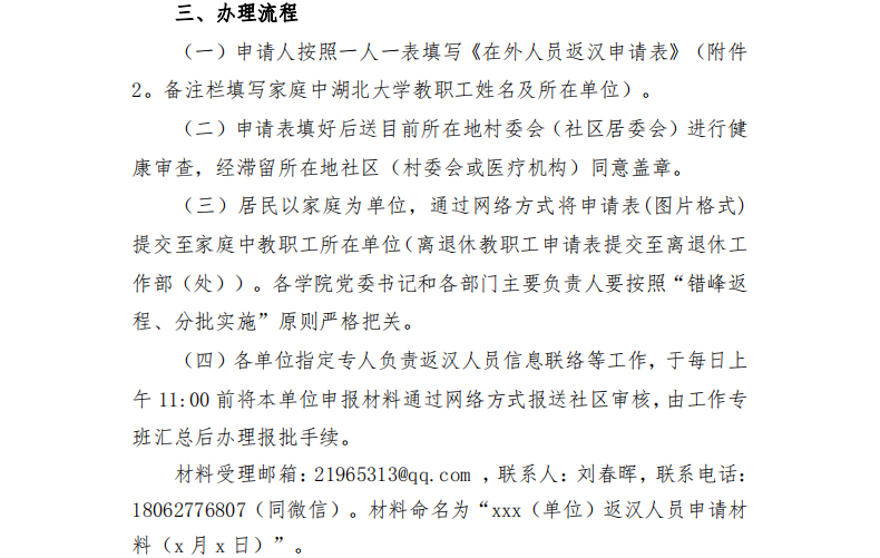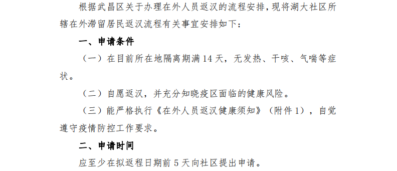 湖大社區所轄在外滯留居民返漢流程