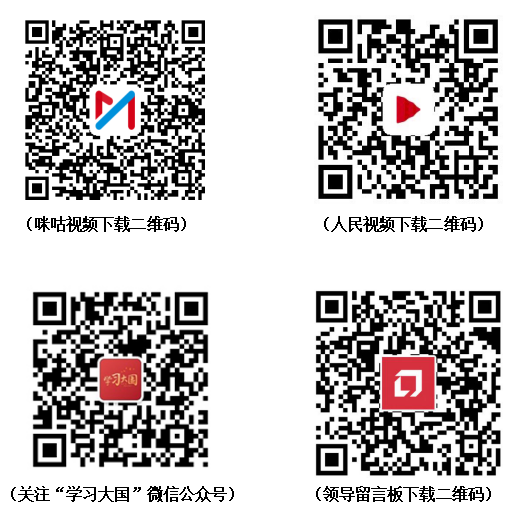 手機、平板:掃描二維碼,或應用商店下載人民智云、咪咕視頻、人民視頻、領導留言板,關注“學習大國”微信公眾號。