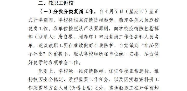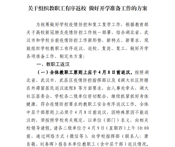 關(guān)于組織教職工有序返校 做好開學(xué)準備工作的方案(第16號)