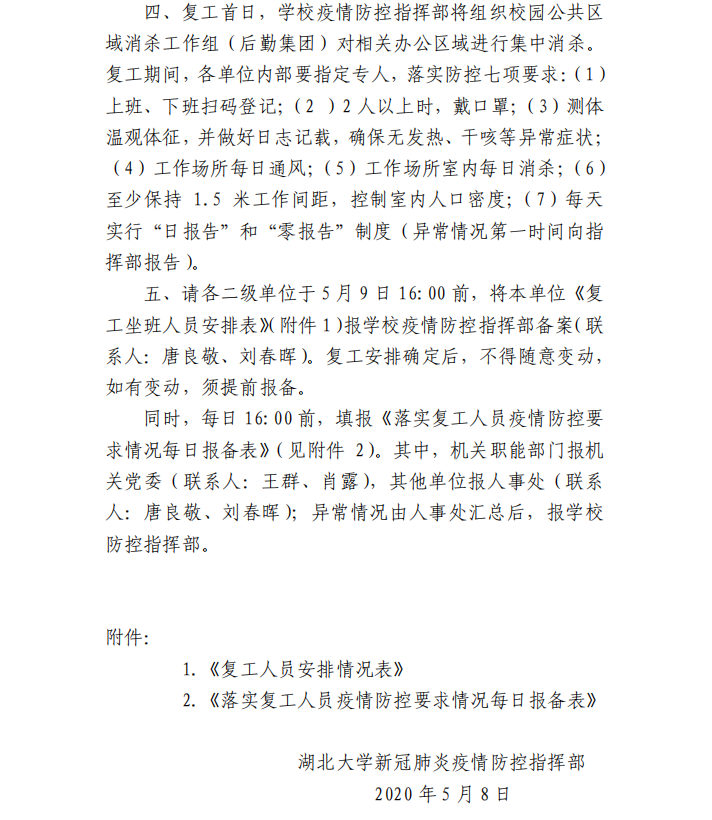 關(guān)于組織校內(nèi)二級單位行政人員返崗值班的通知(第18號)
