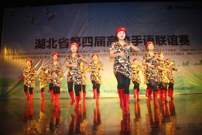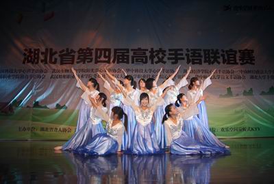【長江網訊】(通訊員 湖北大學 胡丹萍 李本義)纖指傳情,大愛無聲。11月26日,由湖北省聾人協會和湖北大學主辦、湖北大學予愛手語協會承辦的湖北省第四屆高校手語聯誼賽,在該校小禮堂舉行。省殘疾人聯合會黨組書記陶慧芬、副理事長朱志斌、組聯處處長黃杰和該校校長熊健民、黨委副書記鄧長青等領導蒞臨比賽現場。