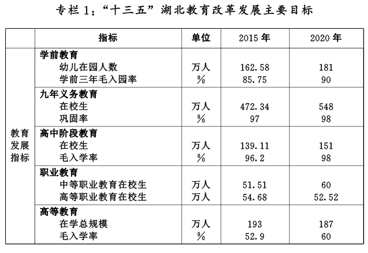 為加快推進湖北教育現代化,根據《國家教育事業發展第十三個五年規劃》《湖北省國民經濟和社會發展第十三個五年規劃綱要》和《湖北省中長期教育改革和發展規劃綱要(2011—2020年)》精神,制定本規劃。