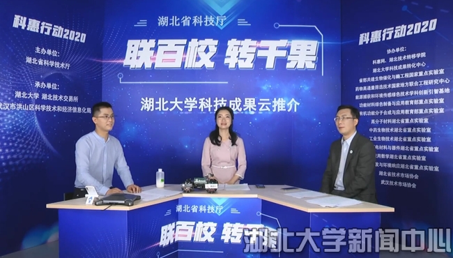 6月13日上午,由湖北省科技廳主辦、湖北技術交易所和湖北大學聯合承辦的“聯百校轉千果”科惠行動2020高校成果云推介湖北大學專場活動成功舉行,長江云、淘寶兩大平臺同步直播。湖北省科技廳副廳長葛琳,湖北大學副校長王世敏直播帶貨,8項代表性成果現場重點推介,386項成果在科惠網上集中展示。累計有230人(企業)認領,轉化金額達到1.22億元。
