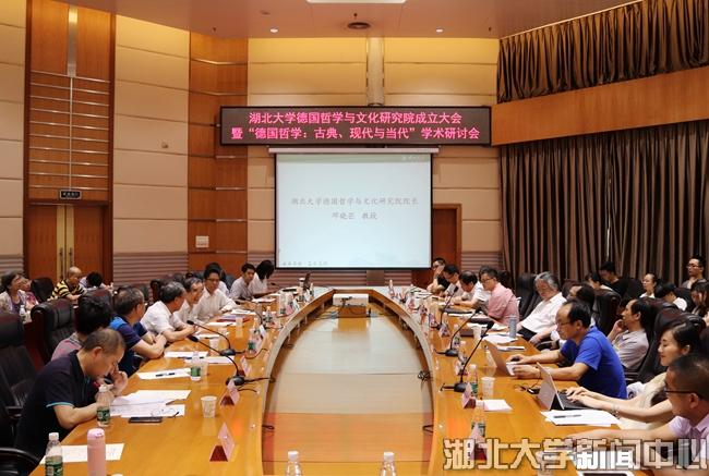 6月29日,湖北大學(xué)德國(guó)哲學(xué)與文化研究院成立大會(huì)暨德國(guó)哲學(xué):古典、現(xiàn)代與當(dāng)代學(xué)術(shù)研討會(huì)在校舉行。來(lái)自清華大學(xué)、中國(guó)人民大學(xué)、四川大學(xué)、山東大學(xué)、武漢大學(xué)、華中科技大學(xué)、湖北大學(xué)等高校的專家學(xué)者匯聚一堂,圍繞德國(guó)哲學(xué)展開交流研討。湖北大學(xué)校長(zhǎng)謝紅星,著名哲學(xué)家鄧曉芒教授,科學(xué)技術(shù)發(fā)展研究院、哲學(xué)學(xué)院、高等人文研究院相關(guān)負(fù)責(zé)人和師生代表等出席成立大會(huì)。高等人文研究院院長(zhǎng)江暢教授主持大會(huì)。