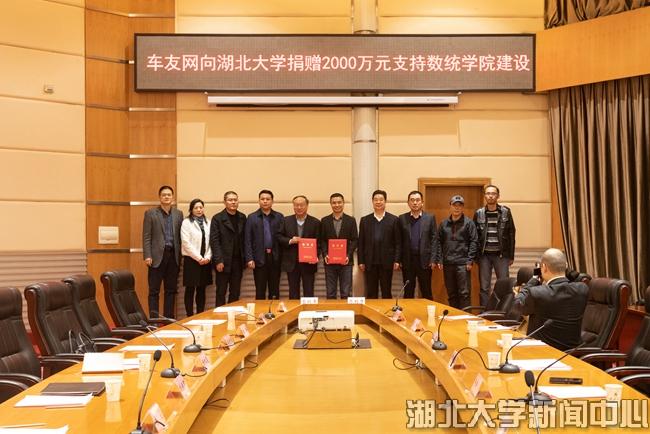 3月15日下午,車友網(wǎng)向湖北大學(xué)捐贈(zèng)2000萬(wàn)元,支持學(xué)校數(shù)學(xué)與統(tǒng)計(jì)學(xué)學(xué)院建設(shè)。