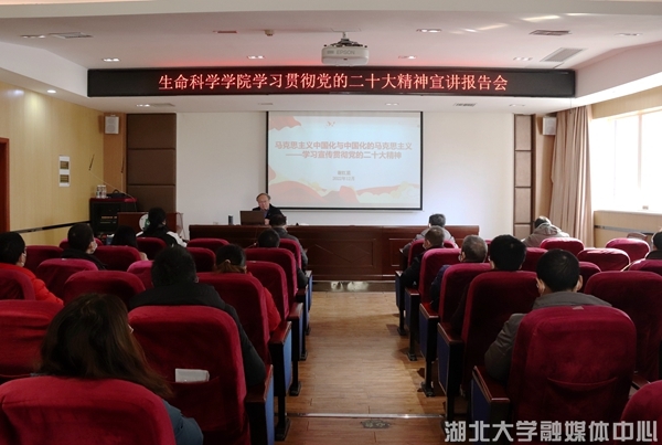 12月13日、14日,校黨委書記謝紅星先后到生命科學學院、馬克思主義學院,通過線上線下結合方式向師生宣講黨的二十大精神。